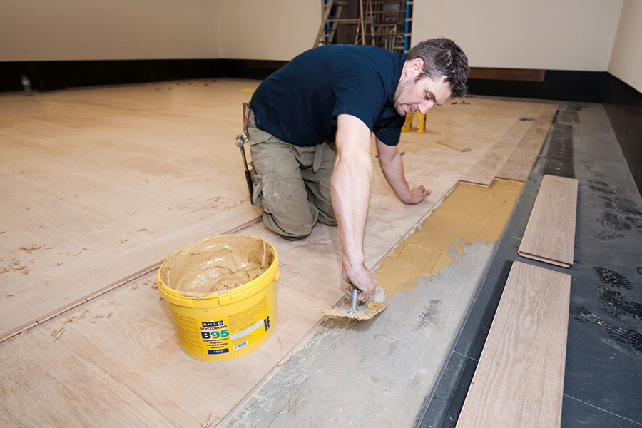 Says the company: ‘Finally, contractors must select a specialist wood adhesive to install wood blocks or planks. Utilising the latest technology, flexible wood floor adhesives provide an elastic but strong bond, which will accommodate natural movement of wood flooring over its lifetime, ensuring a long lasting, visually attractive floor finish.’