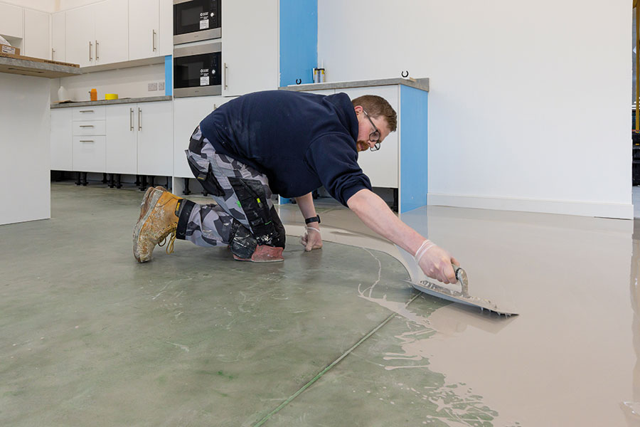 F Ball’s new Stopgap 1400 smoothing compound streamlines vinyl flooring installation at Schoolblazer HQ