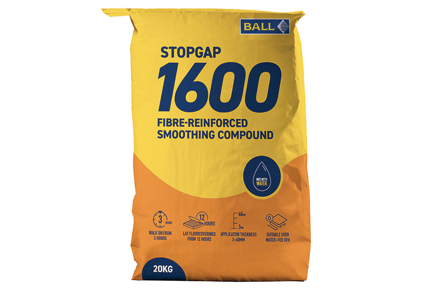 F BALL’s Stopgap 1600 ‘fast-drying, fibre-reinforced smoothing compound is formulated specifically to encapsulate underfloor heating systems’.