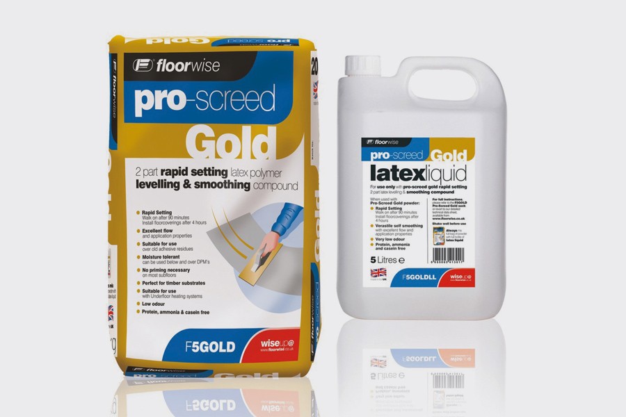 LEAVING subfloors smooth and ready to take on any floorcovering, according to floorwise, Pro-Screed Gold is a two-part levelling and smoothing compound. ‘Used by fitters across the country and established as a ‘must-have’ product to tackle a range of subfloor conditions, Pro-Screed Gold gives the golden touch to any preparation job,’ says the company.