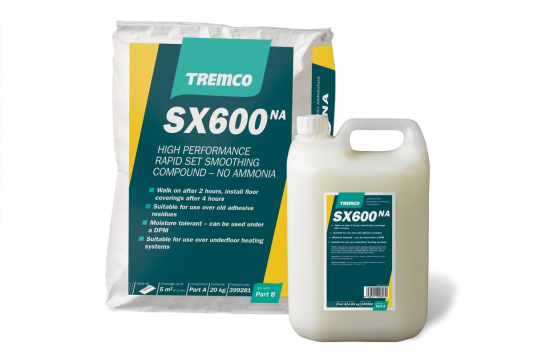 Mark Bradley, TREMCO area sales manager, said: ‘SX600NA is one of a number of smoothing compounds in the TREMCO range, which includes two-part latex underlayments, general-purpose, high performance, and moisture tolerant grades, as well as water-mixed underlayments, which can be hand or pump applied for heavy-duty applications.