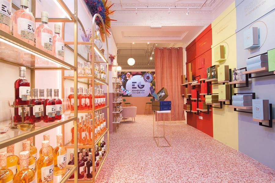 ‘In line with Edinburgh Gin’s brand guidelines, it was important the shop was colourful and that the colours used helped to evoke thoughts of the botanicals used in the gin distilling process.’