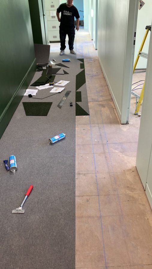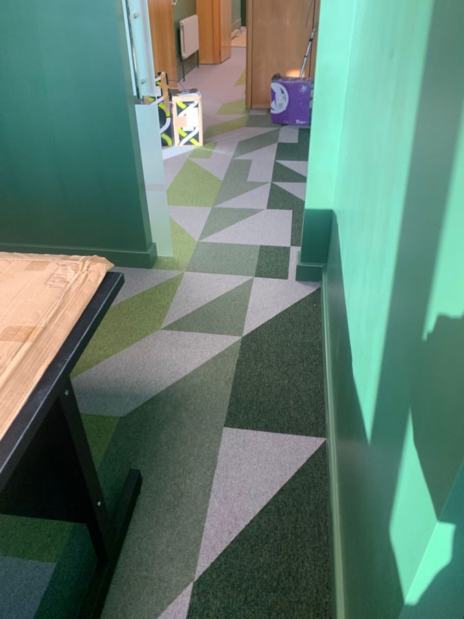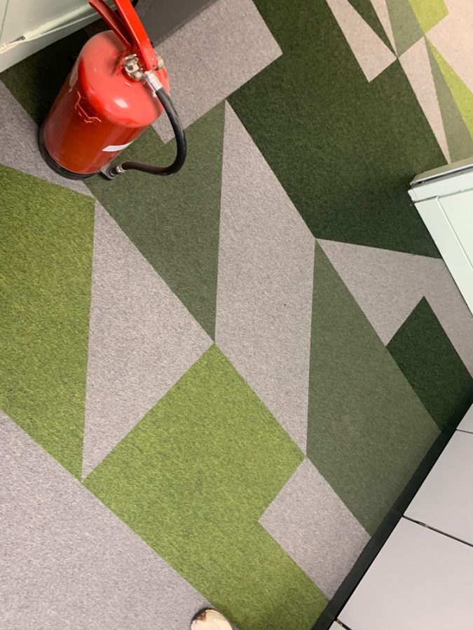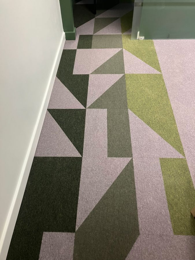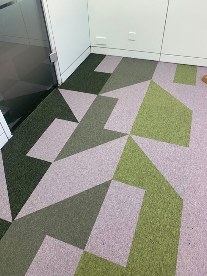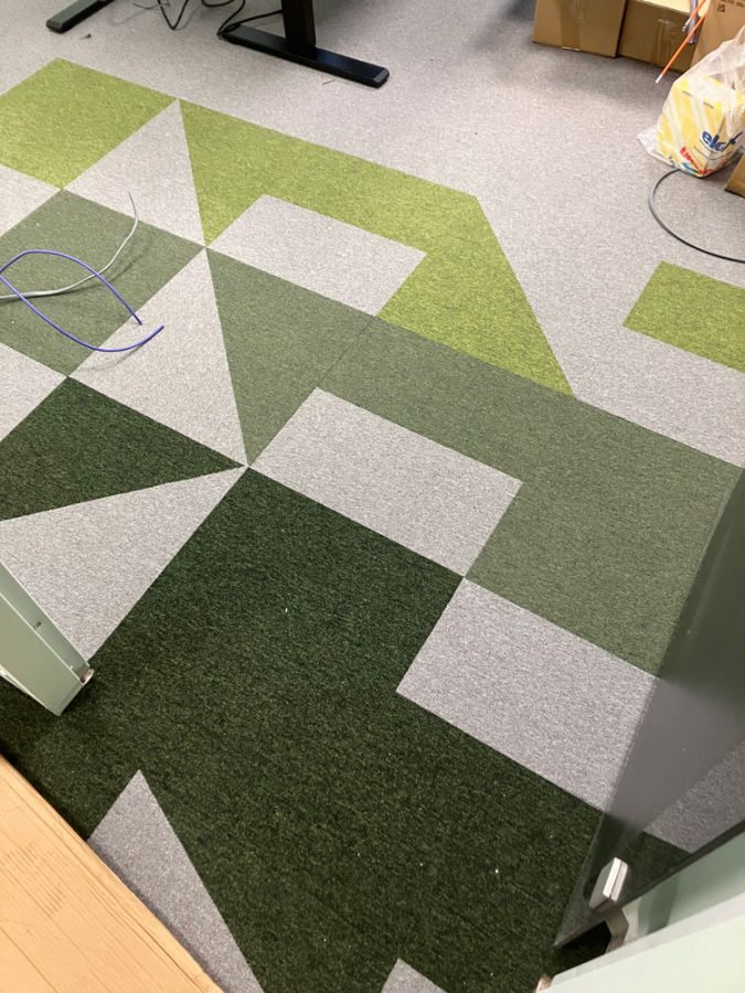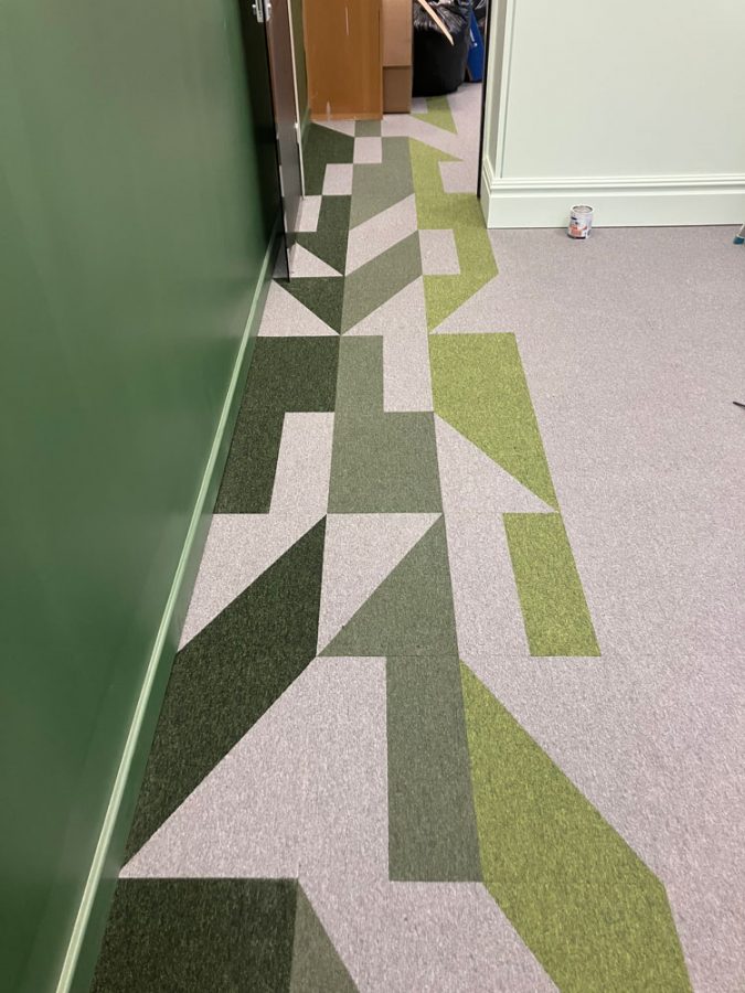 We recently completed a flooring installation at an office space in London, where our team expertly fitted over 200 square metres of Mohawk Group’s Art Intervention Creative Spark carpet tiles. The client selected a sophisticated palette featuring main grey and three different green hues, resulting in an intricate design that our fitting team brought to life with exceptional precision.