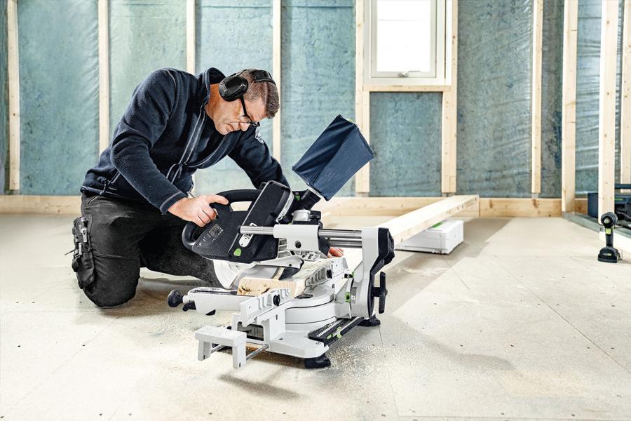 What do floor laying, exterior construction, timber construction and interior finishing all have in common? The answer is simple, says Festool: all trades need a compact saw that is precise, reliable and, most importantly, completely flexible. With its new KSC 60 cordless sliding compound mitre saw, Festool has removed the cable, making this handy all-rounder with Li-ion battery power and the latest generation brushless motors a real front runner.