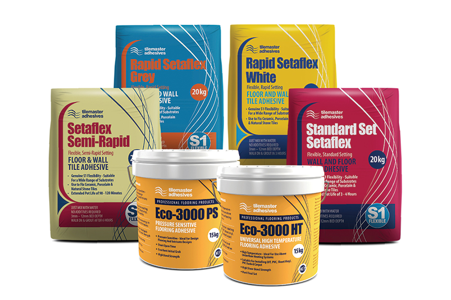TILEMASTER Adhesives offers the Eco-3000 range for the resilient flooring industry, and a full range of professional adhesives for tiling.