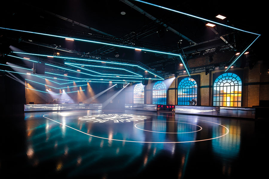 The client brief was for an immersive roller-skating experience with world-class sound and lighting. Central to the state-of-the-art indoor rink was a jet-black floor, an element the client insisted on. The black surface amplifies the atmosphere by maximising the reflection of the overhead lights, LED screens and mirrored panels on the sides.