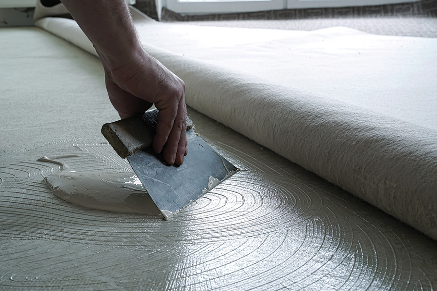 ‘It has a high shear bond strength and dries to a hard final set. It’s a wet-set product, and its 40 minute working time is ample to install floorcoverings.’