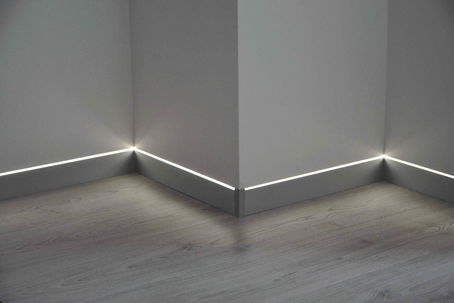Says Mapei: ‘Prolight Metal Line S – an aluminium skirting board with a dual core – is especially suitable for contract flooring application. Offered in nine shades, including white, silver, a variety of natural tones and black, the profiles are suitable for 10mm tiles and are available in 270cm lengths. For practical and energy-efficient night-time lighting, the plinth can be connected to a dimmer switch to vary brightness.