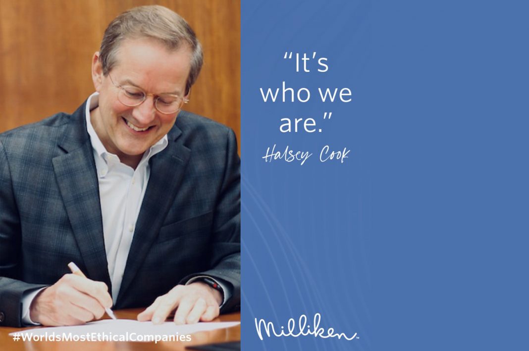 ‘Ethisphere and its world’s most ethical companies program is a key benchmark for the way we do business,’ shares Halsey Cook, president and ceo for Milliken & Company. ‘Receiving this recognition for 16 straight years underscores the culture and commitment of Milliken team members globally. It’s who we are.’