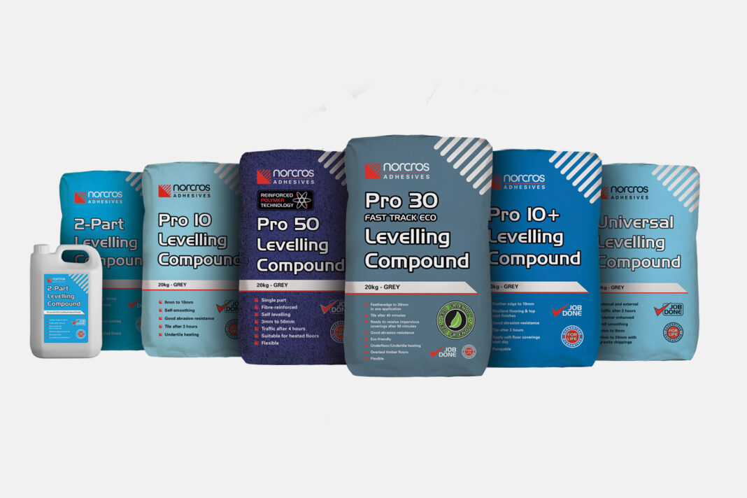 ‘Norcros Pro 10 Levelling Compound is a single part polymer modified self-smoothing floor levelling compound. It’s suitable for levelling various substrates including concrete, cement: sand screed, flooring grade asphalt, terrazzo, and existing quarry and vinyl tiles.