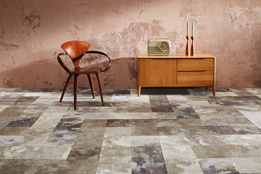 There are washes of colour and ombré transitions all emulating the different layering effects seen in a painted landscape. Rich and complex textures layer with floral brushstrokes and small dashes of seasonal colour. More nuanced colours and tonal contrasts are made possible by Milliken’s recent advancements in their patented printing technology, enabling even greater colour variation and heightened saturation. The combination of the plank format, undulating textures, and saturation of colours work together to create a sense of movement across the floor plane.