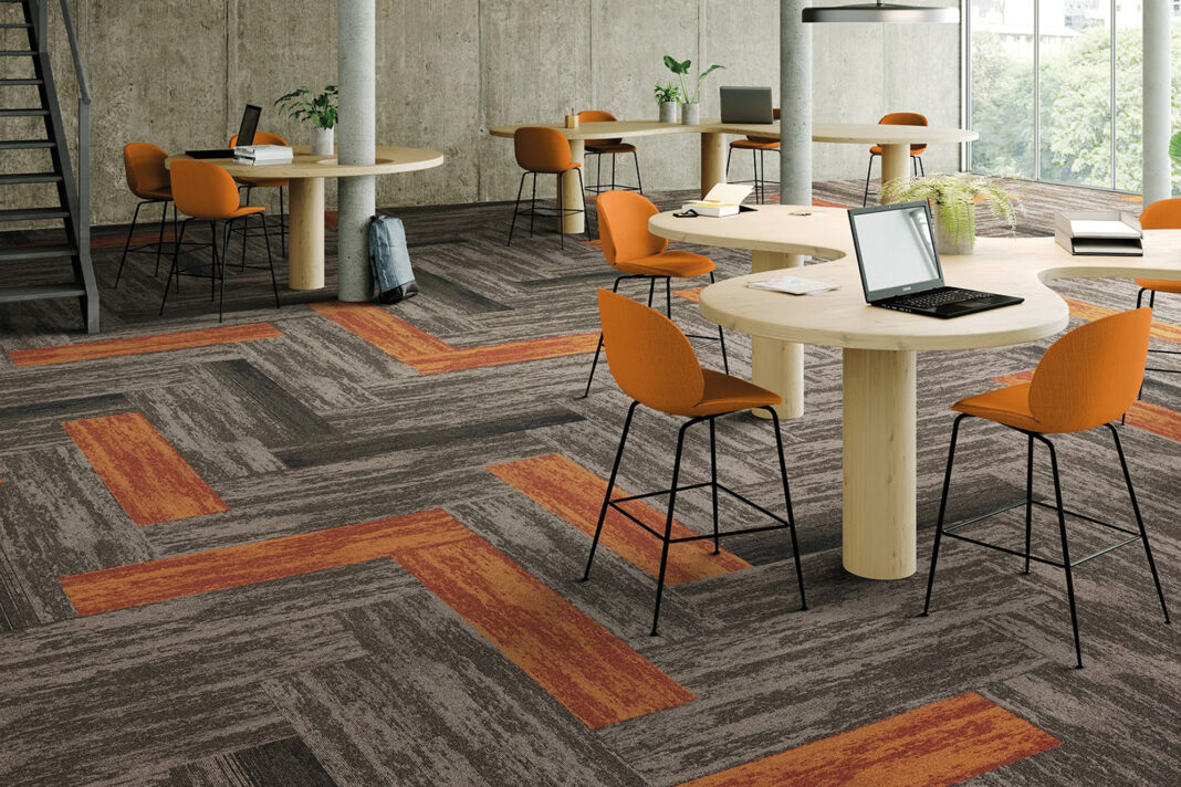 Says the company: ‘Featuring Jute, Teak, Basalt, and the brand-new Clay and Clay Create, all carpet tiles in Rudiments are made from solution-dyed nylon for hassle-free performance, meaning designers can focus on the job-in-hand, delivering inspirational spaces that support the productivity and wellbeing of their users.