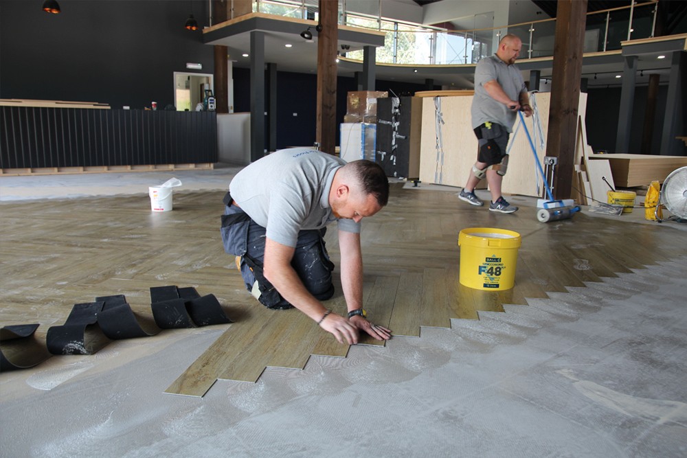 Contractors from First for Floors, based in Saint Austell, installed various floorcoverings, including vinyl sheet and tiles, wood, and carpet tiles, throughout the 620sq m space at the English Spirit Distillery, which features a 2,500 litre copper still as a centrepiece, as well as a café, bar, shop, and offices.