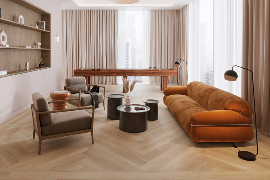 With 75% of LVT flooring design being ‘timber effect,’ LVT platforms are accessible for use across all project segments. Shaw Contract introduced a refresh to their ‘go to’ LVT platform at the end of 2023 with the introduction of Nordic: a 5mm and 2.5 mm LVT collection including 10 ‘scandi’ tones of timber. The product like similar LVTs looks realistic and is said to be well priced and in stock for immediate purchase. The introduction of Exoguard+ finish for enhanced durability and scratch resistance is the one extra update for the collection, says the company. However, the new collection also has Air Comfort Gold certification, to ensure air quality and a Health Product Declaration to confirm the product doesn’t contain harmful chemicals. It was an important sustainability consideration during the product development process, says Shaw Contract.