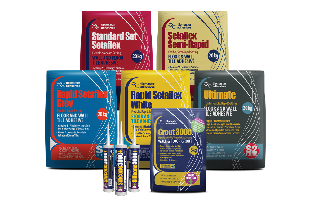 Says the company: ‘Where a flexible adhesive is required, Tilemaster Adhesives has a choice of standard, semi-rapid and rapid setting products in the Setaflex range, a polymer-modified, flexible cement-based wall and floor tile adhesive.’