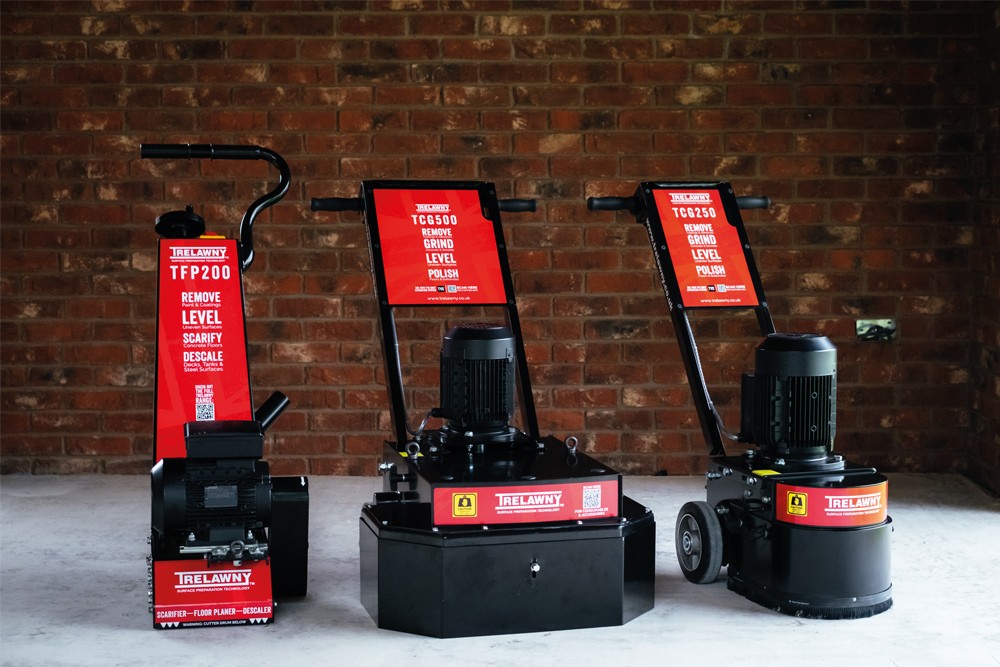 ‘The scarifier range includes the Trelawny TFP200 and TFP260, which are ideal machines for fast and effective concrete reduction, removing hard coatings and floor paints as well as levelling, grooving, and texturing concrete leaving a profiled finish. These machines are available in electric, petrol, and pneumatic power options all with integrated dust extraction ports fitted as standard. The Trelawny TFP series is a productive, robust range of scarifiers ideal for professional contractors and hire customers.’