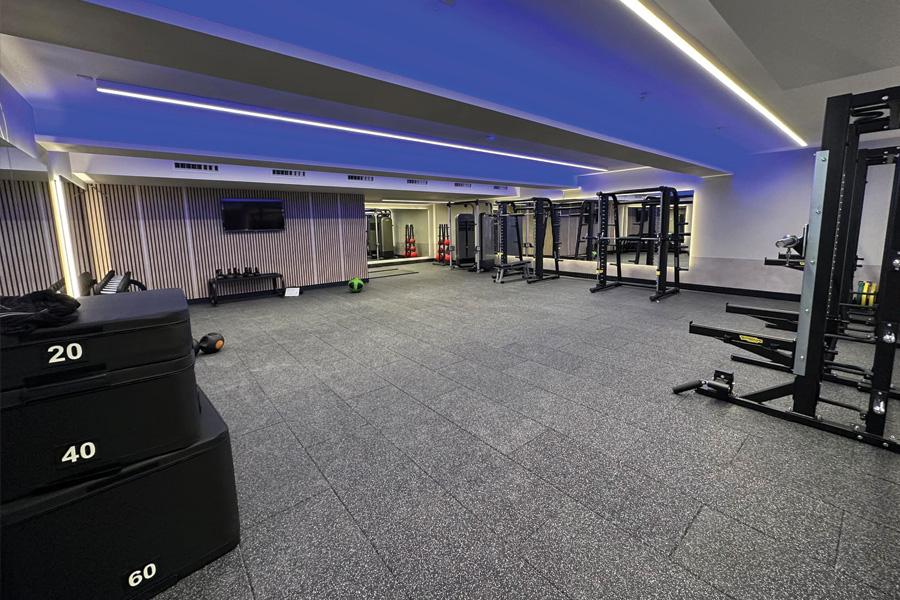 To accomplish this, says the company, 40mm-thick, heavy-duty, inter-connecting rubber gym tiles were identified as a suitable solution for this space and TVS Group went on to source, supply and then install the well-known SPORTEC Style Tiles.