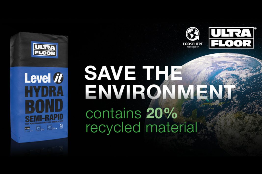‘By utilising Ecosphere Technology in its formulation, UltraFloor are pleased to announce that every bag of Level IT Hydra Bond not only contains 20% recycled material, but also eliminates the use of single use plastic bottles – helping to reduce the carbon footprint of your project.