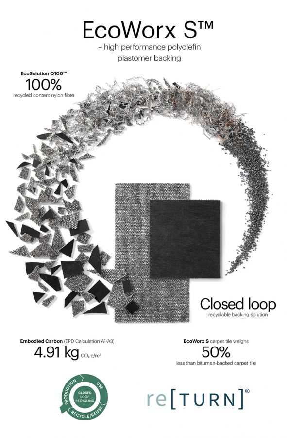 Closed loop recyclable, at the end of its useful life New Path on EcoWorx S™ carpet tile becomes the raw material for its own production. The entire carpet tile can be returned to Shaw Contract as part of Shaw’s Re[TURN] reclamation programme meaning when you send it back you are contributing to a closed loop lifecycle.
