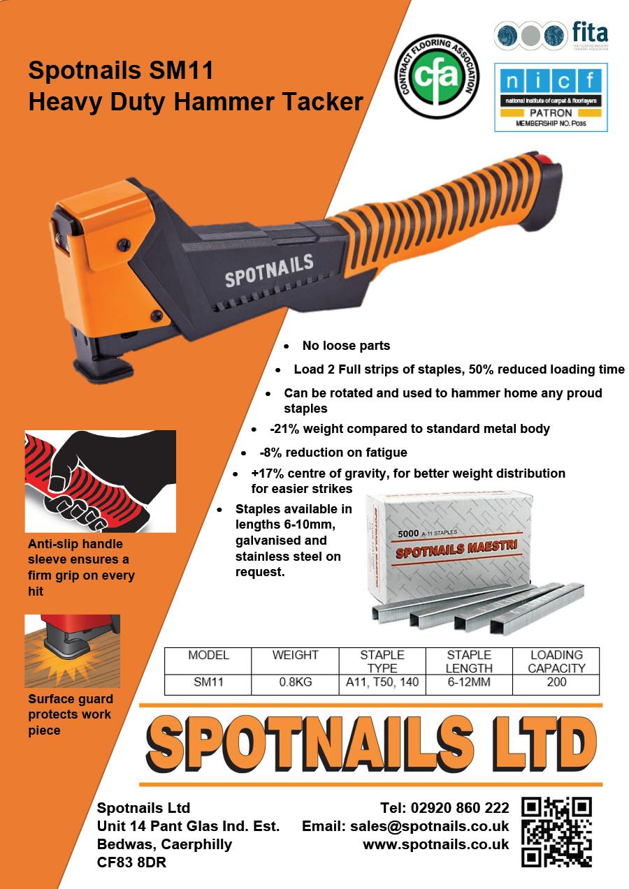 Spotnails Ltd are a British owned company with over 70 years’ experience supplying Pneumatic and electronic tools and Fasteners to the flooring industry. Alongside Spotnails brand products, we are distributors of several other leading manufacturers. We have an extensive product range for all aspects of the flooring industry from sub floor preparation to fitting carpet underlay. We have a nationwide sales force backed up by a friendly and knowledgeable in-house sales, repair and service team.
