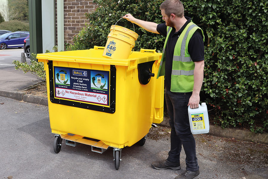 F Ball plastic buckets and the company’s five and 20 litre plastic bottles used for liquids, primers and tackifiers can be recycled via the scheme, with much of the packaging itself manufactured from recycled materials.