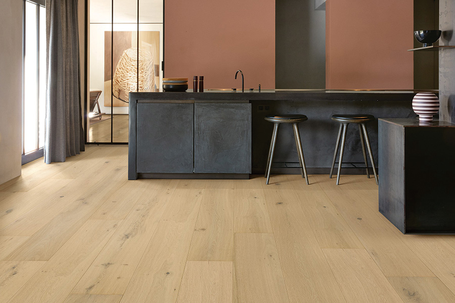 Says Quick-Step: ‘When it comes to installation, Uniclic Mulitfit (Uniclic on Disegno and Intenso) keeps everything fast and efficient. Every Quick-Step wood floor is also supported by a full range of matching accessories, including everything needed for a totally waterproof floor, for an end result that upholds the floor’s premium quality. Aftercare is well looked after too, with a range of specialist maintenance and cleaning products.