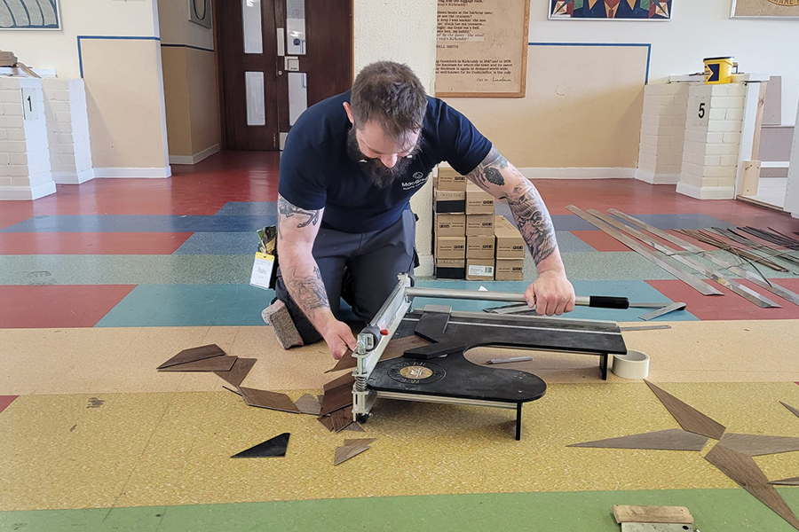 The FITA 3-Day intermediate LVT course deals with more complicated fits and is designed to improve on already gained skills of a design floor installer including approaches to more complex installation techniques such as border work, 45-degree fitting, feature strips and herringbone work.