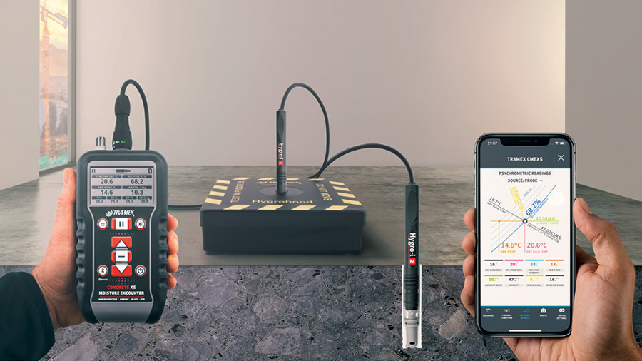 Since then Tramex has been at the cutting edge in innovation in moisture detection, developing non-destructive and in-situ moisture meters, hygrometers, data loggers and remote monitoring systems for specific building materials, climatic conditions within the entire building envelope, focusing on numerous industries including flooring, water damage restoration, roofing, building and home inspection, pest control, as well as the marine industry.