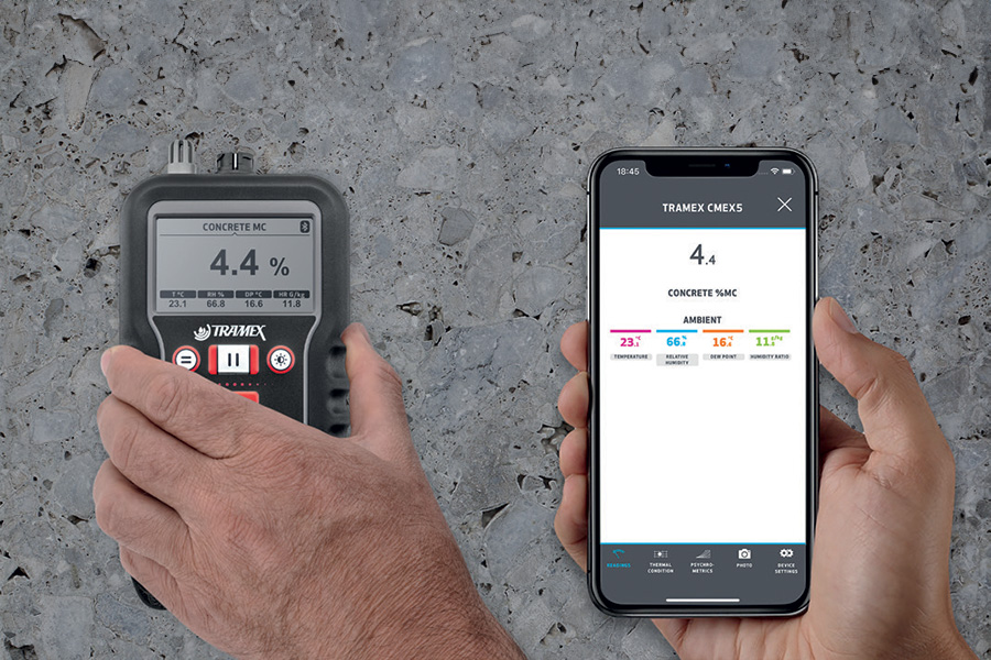 The latest versions of the Tramex Moisture Encounters released in 2020 – the 5 series – are all equipped with Bluetooth connectivity to allow for moisture mapping, monitoring, recording and reporting through the Tramex Meters app.