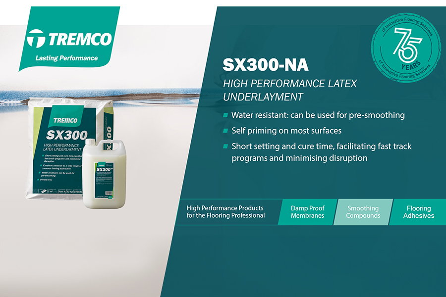 To ensure the success of any floor finish, choosing the right smoothing compound is critical, and Tremco’s SX300NA high performance latex underlayment has been developed to ensure you have a well-prepared base for your floor coverings. Whether you are looking at a new build or refurbishment project, Tremco’s range of smoothing compounds are designed to save flooring contractors valuable time and money, with competitive walk-on times and drying times.