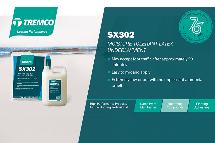 To ensure the success of any floor finish, choosing the right smoothing compound is critical, and Tremco’s SX302 moisture tolerant latex underlayment has been developed to ensure you have a well-prepared base for your floor coverings. Whether you are looking at a new build or refurbishment project, Tremco’s range of smoothing compounds are designed to save flooring contractors valuable time and money, with competitive walk-on times and drying times.