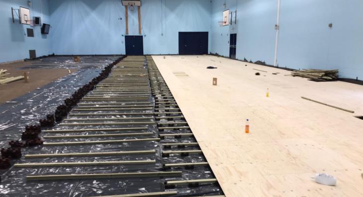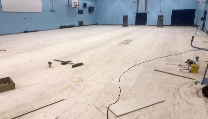With the old floor removed and disposed of by a specialist contractor, TVS Group got to work. The budget would not allow for a full re-screed of the concrete subfloor so TVS Group had to bring in a fully customisable subfloor. The company’s TVS RESi Sports Floor was perfect. The system uses a traditional battened floor build-up with sport-specific elastic cradles and shims to create a uniform level.