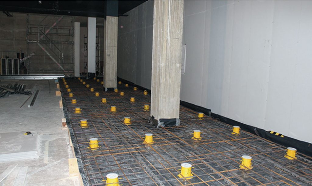 - One of the major benefits of this TVS Acoustics spring system is its accessibility from above, which allows for subsequent levelling of the floating slab, as well as spring replacement with springs of differing capacities.