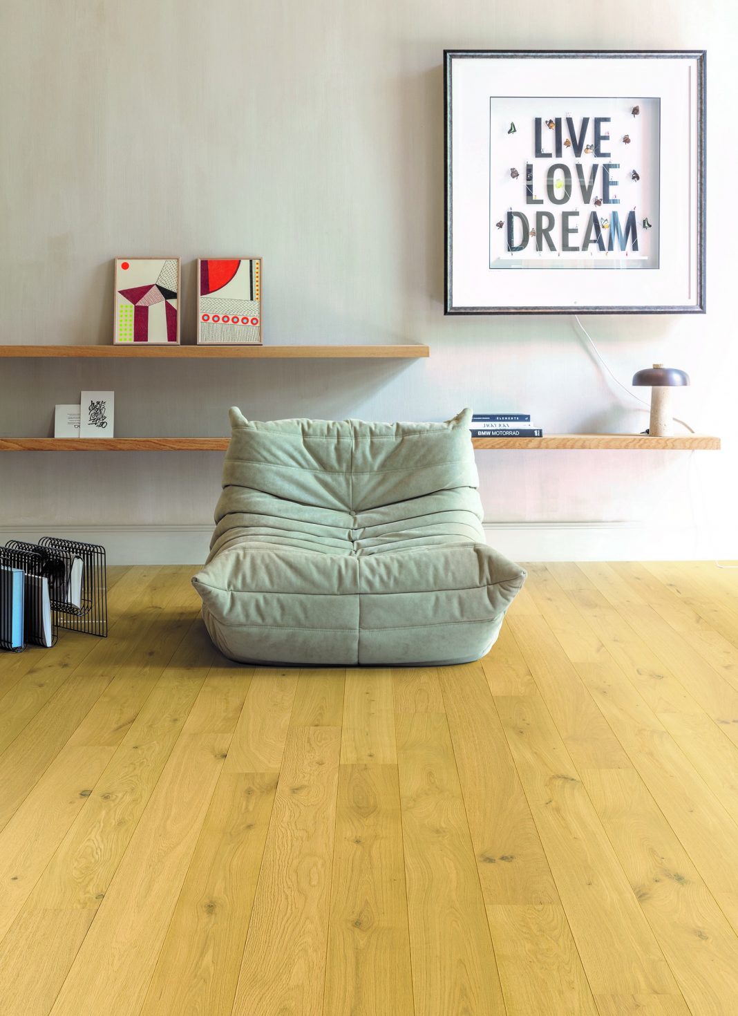 Giving wood this long life is all part of Quick-Step’s journey to circular production for its floors. Ensuring floors stay looking good and can last a lifetime means they don’t have to be thrown away after a few years. The core and backing of Amato are made from recovered wood or fast-growing trees, while the oak top layer is thinner for less use of sustainably managed timber. Quick-Step is also the first company in the world to develop ground-breaking recycling technology that can now turn the core of its wood floors into new materials.