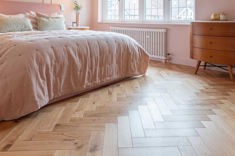 “Once the extension was in place the builders worked top down in completing the fit-out of the rooms so one of the first things I had to think about was flooring for the bedrooms and landing. In my head I had always liked the idea of a wood floor upstairs, and in particular a parquet style of floor. I’ve never been a fan of carpet; I just find that they always end up looking grubby quite quickly and are a magnet for things like my cat’s fur. I’d seen V4 floors on Instagram and was always drawn to the Zigzag herringbone styles so I started my search there and it was really straightforward to choose the floor. I wanted a wood floor that basically looked like natural wood, so nothing stained too dark or light, just something very authentic. So, it was no surprise that when samples arrived it was easy for me to pick the Natural Oak finish as my favourite.”